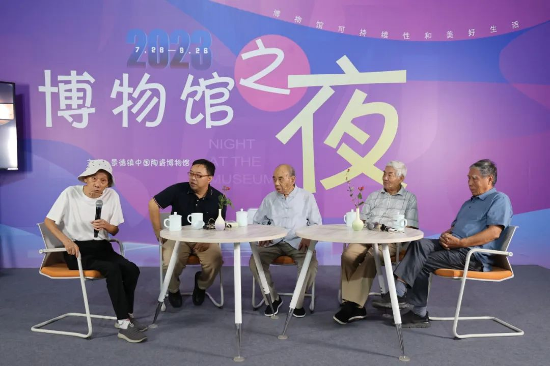 那么,这件元青花缠枝牡丹纹梅瓶到底是如何来到景德镇中国陶瓷博物馆的呢?在8月4日晚,2023博物馆之夜系列活动的“博物馆夜谈·景博那些事”中,李会中、欧阳世彬、黄云鹏、饶克勤四位当年故事的亲历者共聚一堂,为大家揭秘了“镇馆之宝”的流传经历。