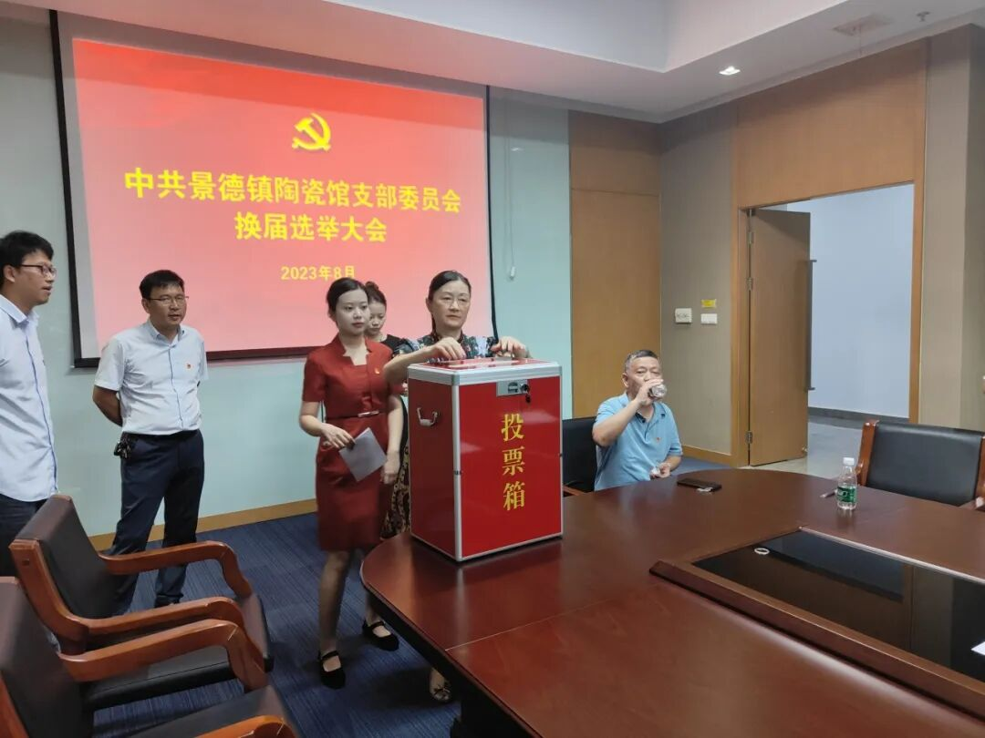 根据《中国共产党章程》、《中国共产党基层组织选举工作条例》等相关规定,经景德镇市文旅局机关党委批复。2023年8月25日上午,中共景德镇陶瓷馆支部委员会换届选举大会在景德镇中国陶瓷博物馆二号会议室召开,会议选举并产生了新一届支部委员会。全体党员参加会议。会议由馆党支部副书记、工会主席程丽主持。