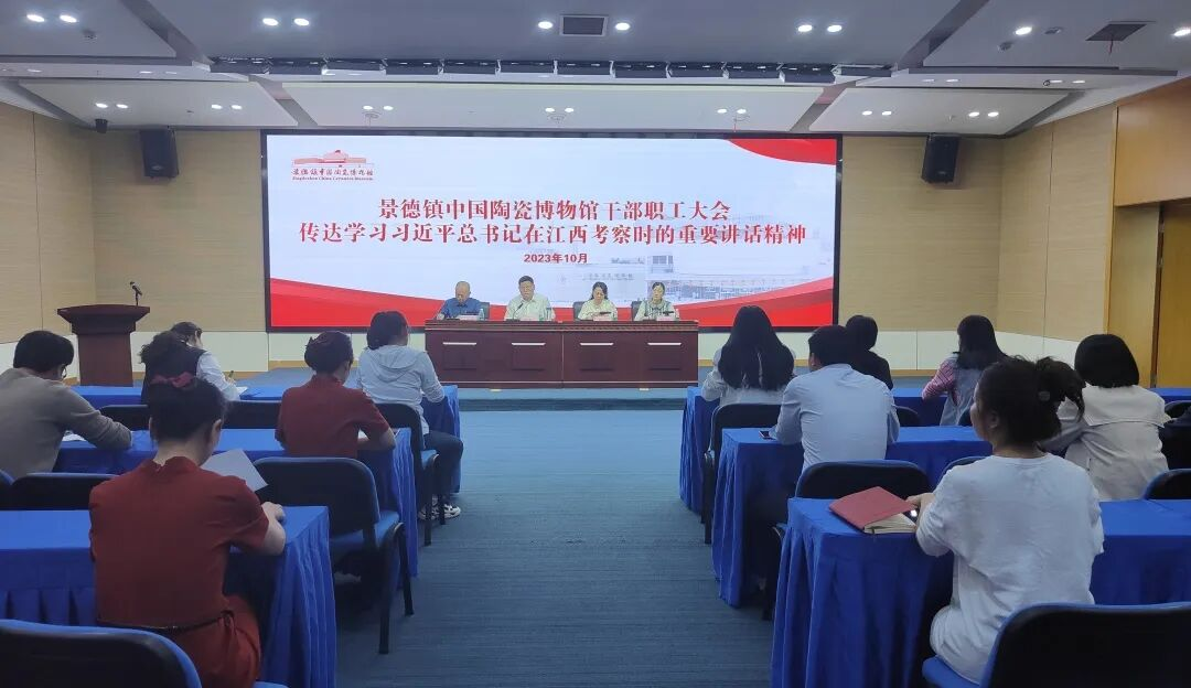 10月16日下午,景德镇中国陶瓷博物馆召开全馆干部职工会议,传达学习习近平总书记在江西考察时的重要讲话精神。馆党支部书记、馆长彭国红主持会议并讲话,全馆干部职工参加会议。
